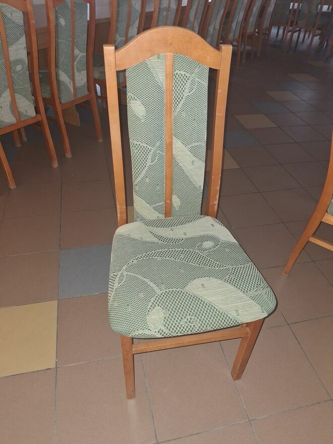 Krzesła tapicerowane, stoły.